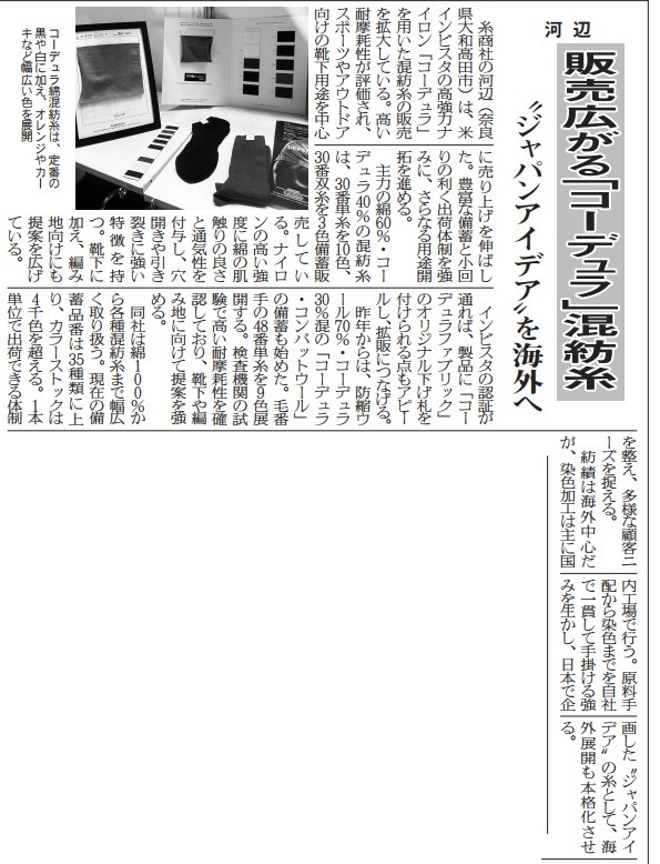 2026/03/05 令和8年3月4日繊維ニュース掲載 お知らせ 令和8年3月4日付の業界紙「繊維ニュース」において、当社が掲載されました。 日頃よりご支援いただいている皆様に、心より感謝申し上げます。