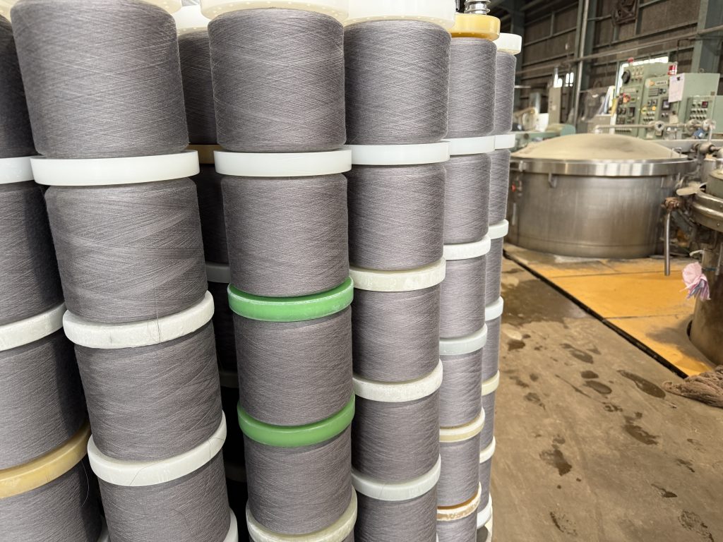 先週、日頃より大変お世話になっている兵庫県の染色工場様を訪問したこの日も、やはり雨。